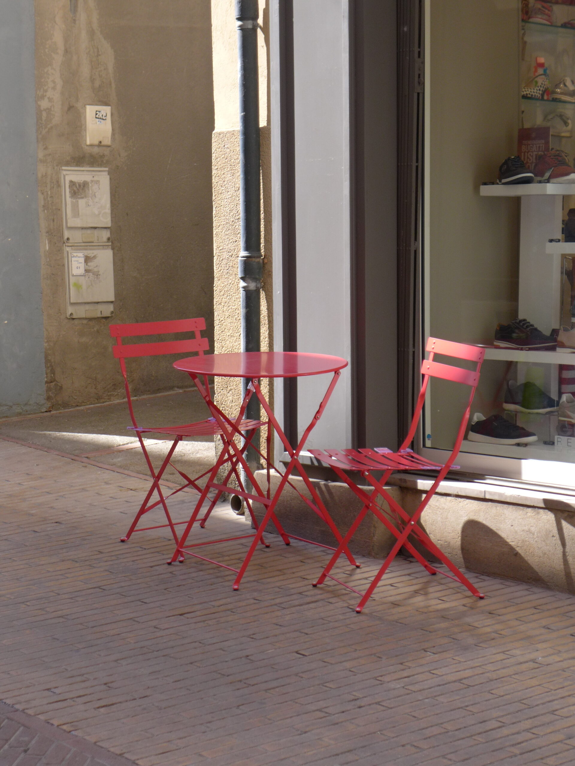 Rote Stühle mit Tisch