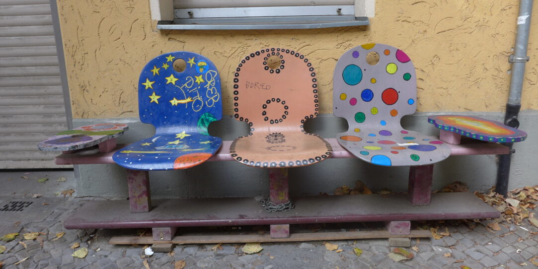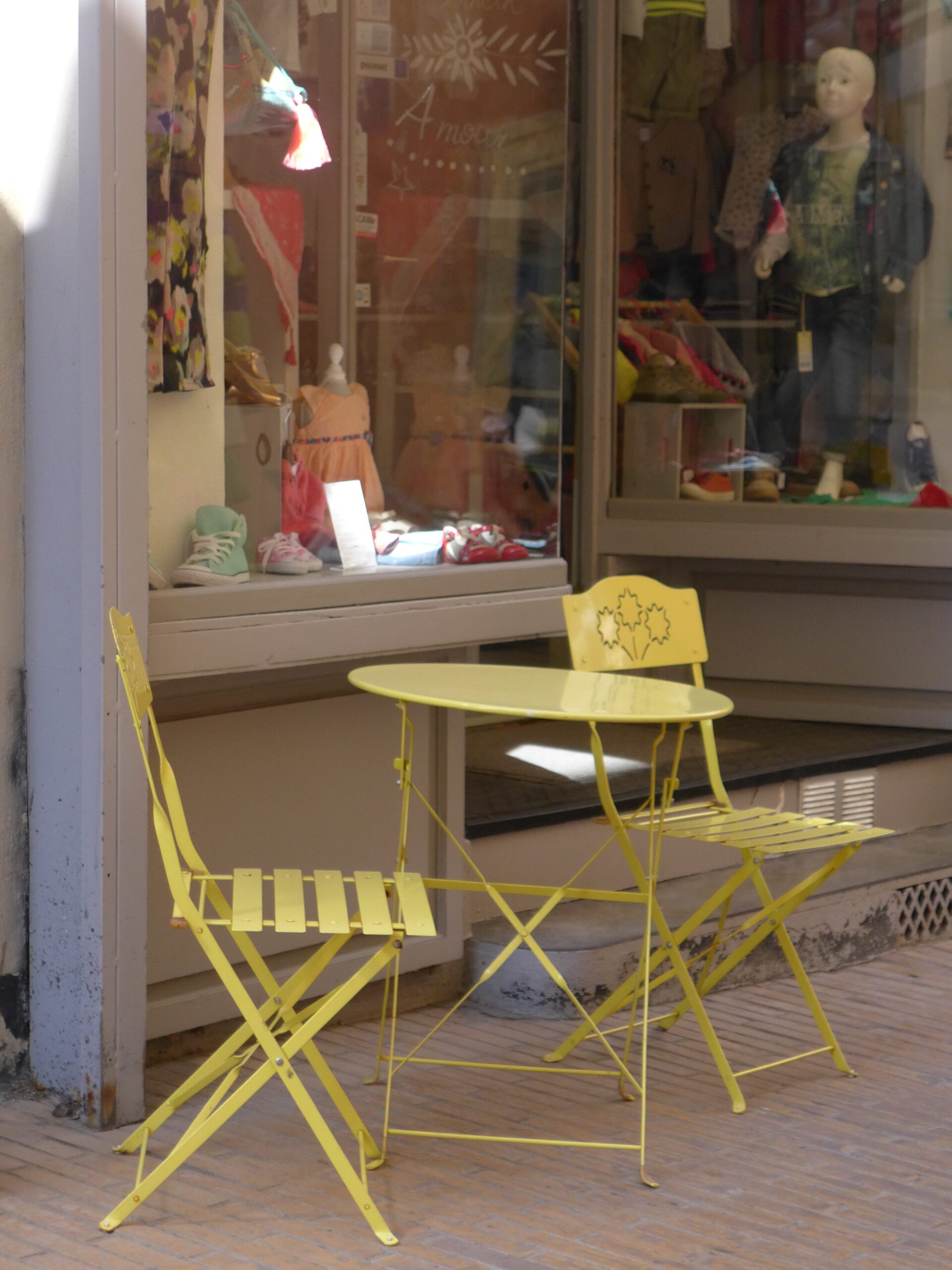Gelbe Stühle mit Tisch